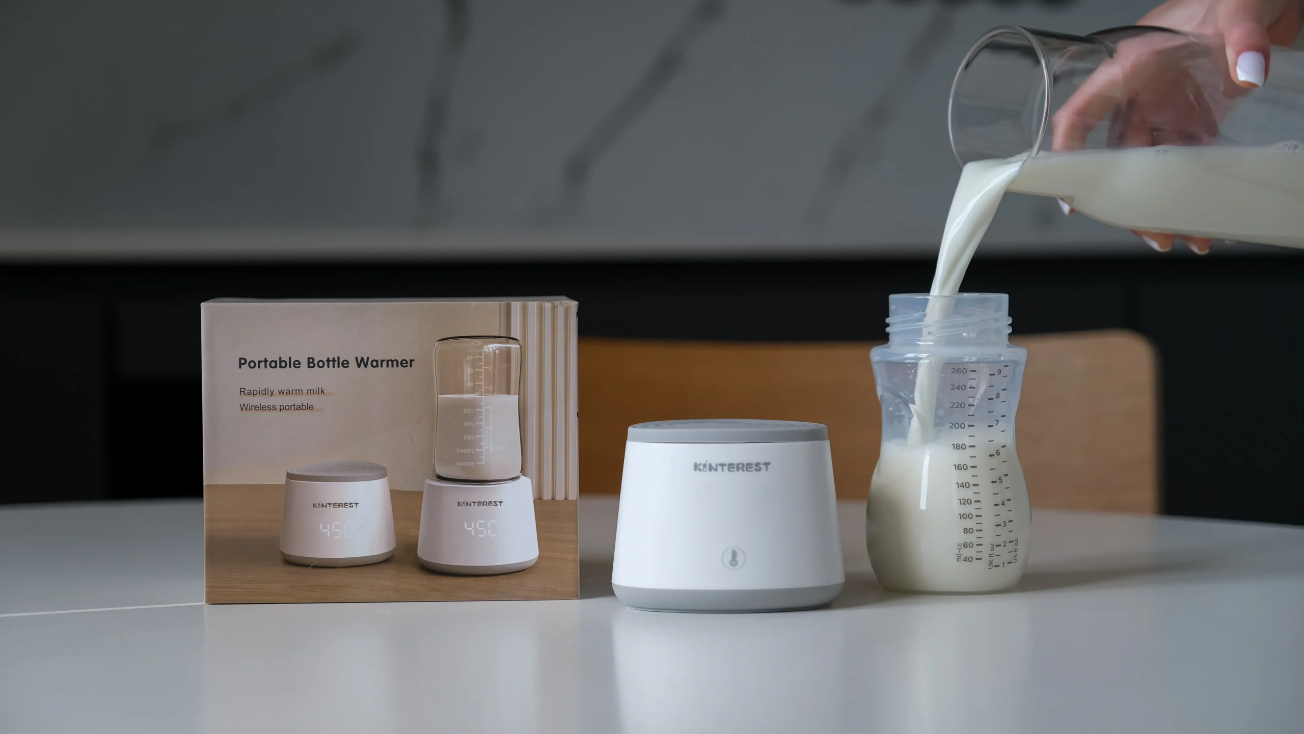 Ceļojiet bez raizēm — pilna uzlāde pietiek 6 x 120 ml pudelēm. Nav nepieciešami vadi vai karsts ūdens.