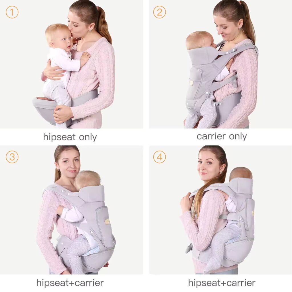 Daudzfunkcionāls bērnu nēsāšanas ergosoma nodrošina drošību un komfortu bērnam, atbrīvojot vecākiem rokas un samazinot slodzi uz mugurkaulu.