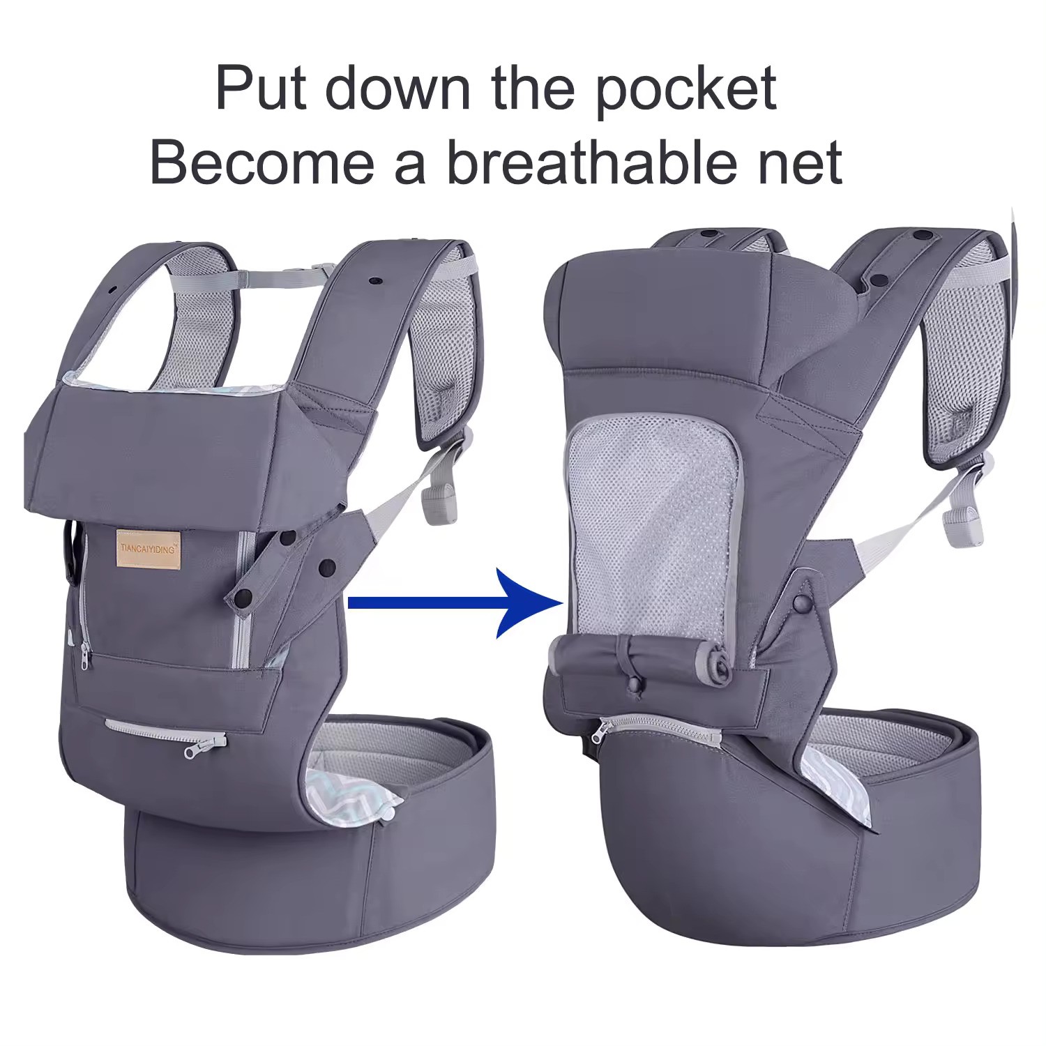 • Ergonomisks dizains — kājas ir dabīgā “M” pozīcijā, kas veicina veselīgu gūžu attīstību.